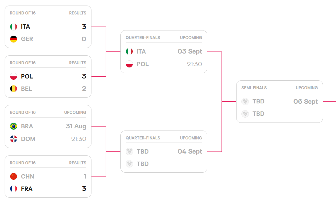 中新网北京8月31日电 北京时间31日,2025年世界女排锦标赛1/8决赛在泰国曼谷进行。中国队1:3不敌法国队,无缘八强。